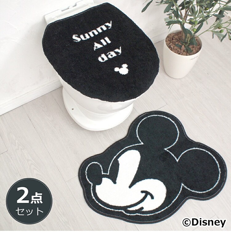 ミッキートイレマット トイレカバー トイレ2点セット ウォッシャブル 滑りにくい トイレタリー おしゃれ トイレ 洗浄便座 暖房便座 シンプル ナチュラル ベーシック ディズニー Disney mickymouse【送料無料】