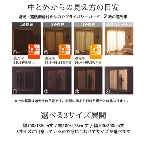 洗濯可(ネット使用)、中国製、1.5倍ヒダ、タッセル付、Aフック、遮光カーテンは形状安定加工