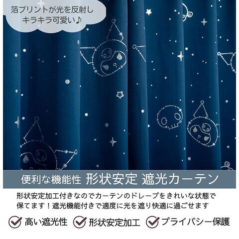 クロミ キラキラ 遮光 幅100×丈178cm カーテン 2枚セット 正規ライセンス品 公式 サンリオ SANRIO クロミちゃん バク マイメロディ マイメロ キャラクター 女の子 キッズ かわいい おしゃれ【送料無料】