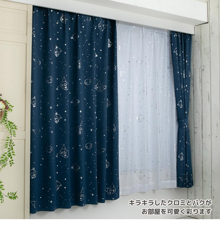 クロミ キラキラ 遮光 幅100×丈200cm カーテン 2枚セット 正規ライセンス品 公式 サンリオ SANRIO クロミちゃん バク マイメロディ マイメロ キャラクター 女の子 キッズ かわいい おしゃれ【送料無料】