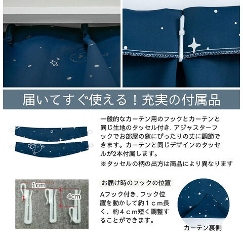 洗濯可(ネット使用)、中国製、1.5倍ヒダ、タッセル付、Aフック、遮光カーテンは形状安定加工