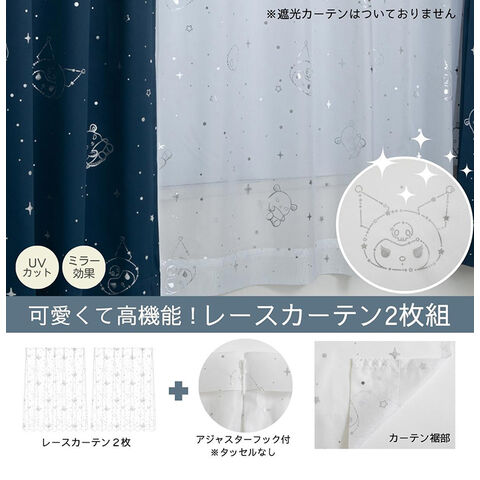 レースカーテン 2枚セット クロミ 幅100×丈133cm UVカット率99.9% 外から見えにくい キャラクター グッズ 正規ライセンス品 公式 サンリオ SANRIO クロミちゃん バク マイメロディ マイメロ【送料無料】