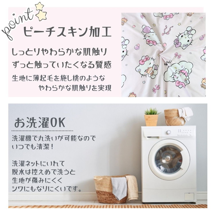 ピーチスキン加工で柔らかな肌触りの布団カバー。フリル付きの掛け布団カバー ボックスシーツ 枕カバーの3点セットでお部屋が一気に大変身! しわになりにくく、 乾きも早いのが特徴です。