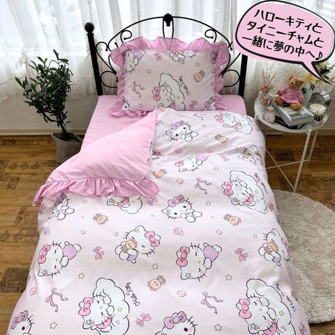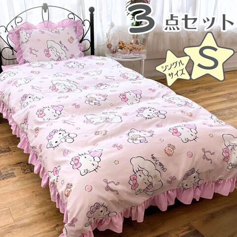 サンリオ ハローキティ シングル 3点セット フリル付き 掛け布団カバー ボックスシーツ 枕カバー しわになりにくく乾きが早い ピーチスキン加工 マイメロディ クロミ サラサラかわいい【送料無料】