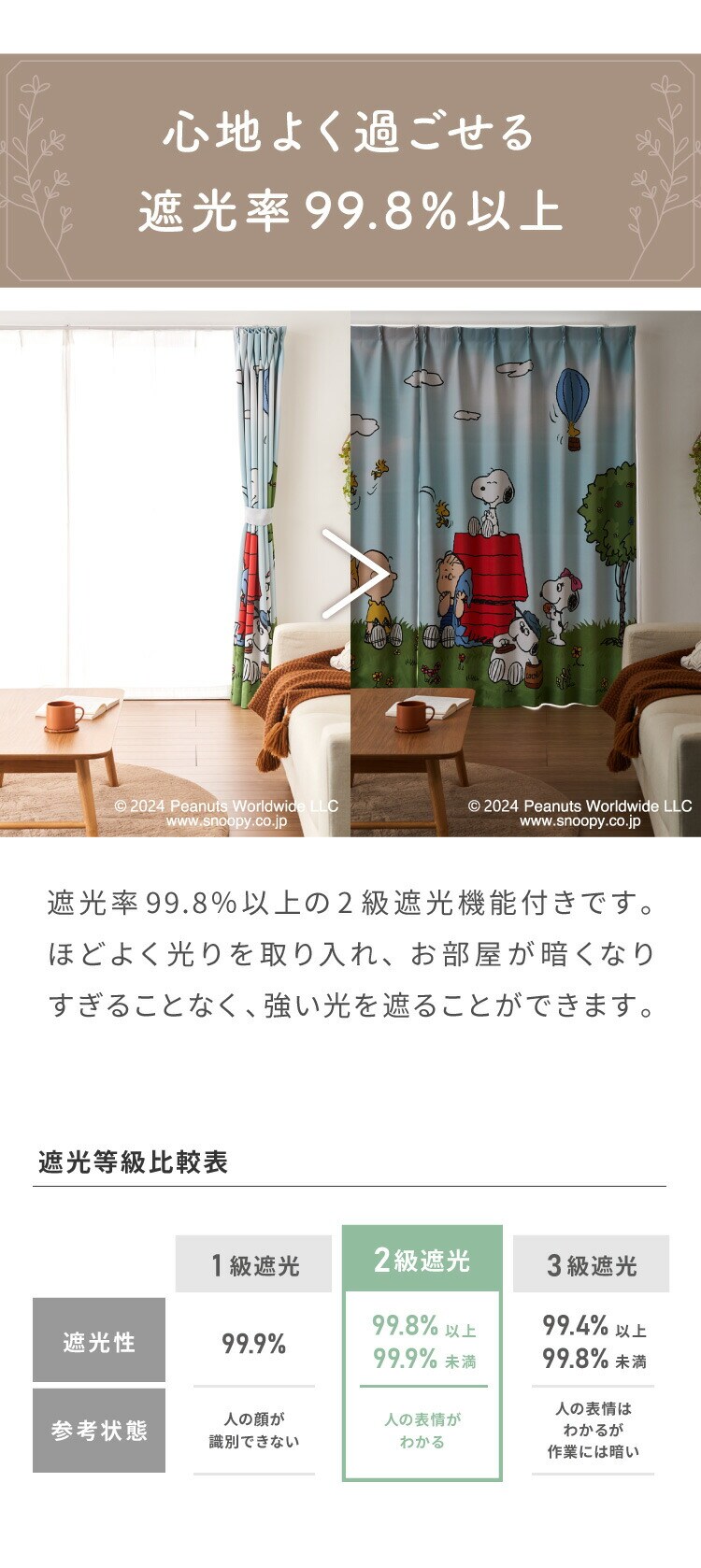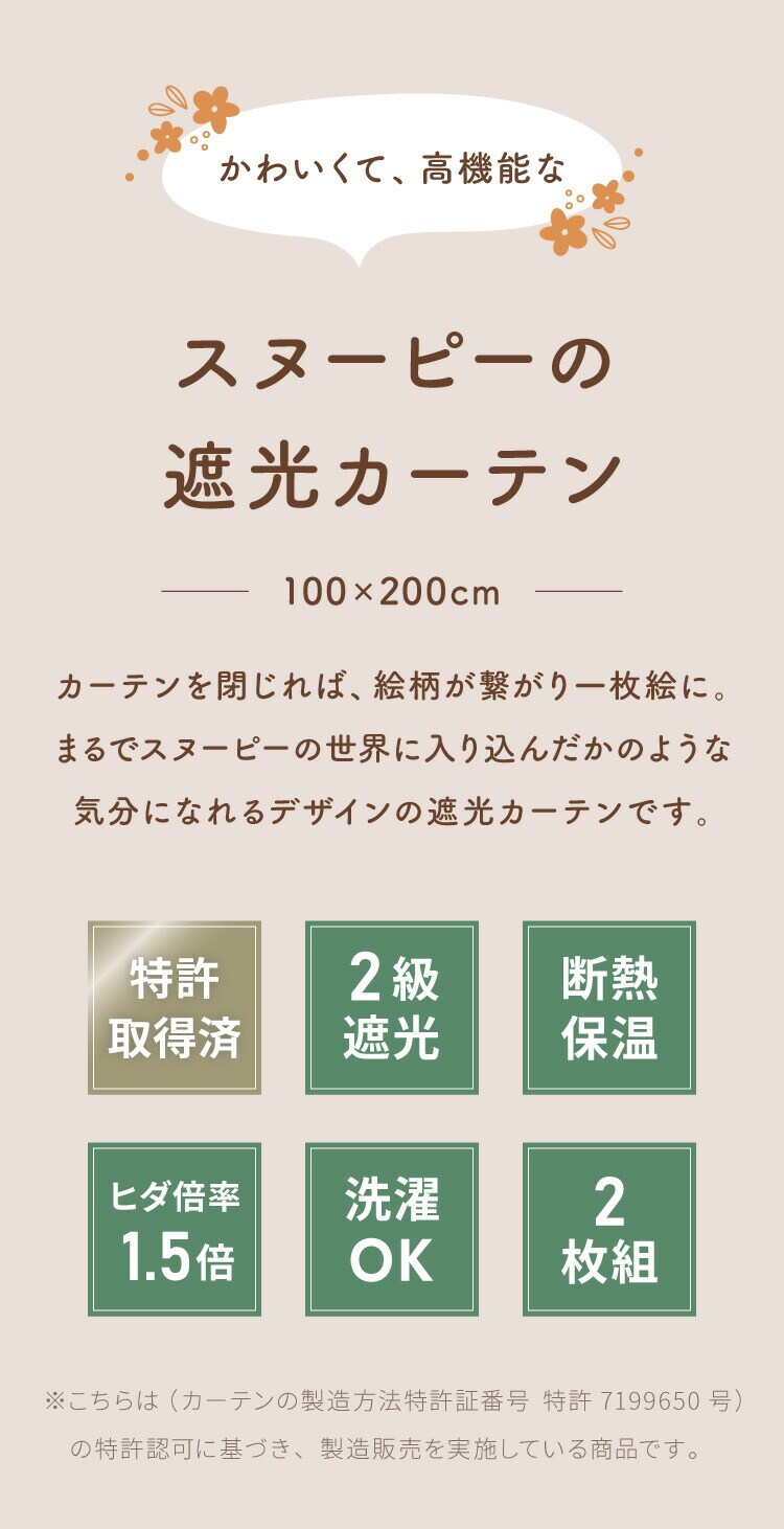 スヌーピーの2級遮光カーテン