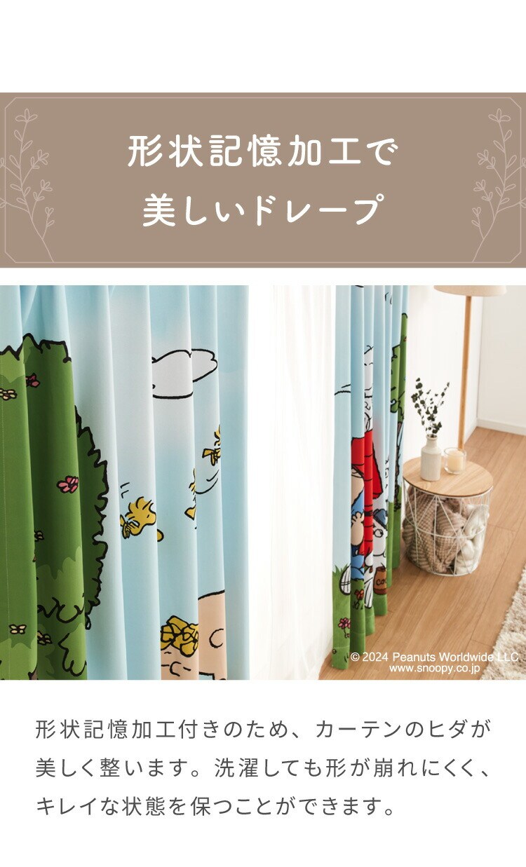 スヌーピー絵羽遮光カーテン 2枚組 100×200cm ドレープカーテン 遮光 洗える 洗濯 カーテン フック タッセル付き おしゃれ かわいい PEANUTS スヌーピー チャーリーブラウン オラフ アンディ【送料無料】