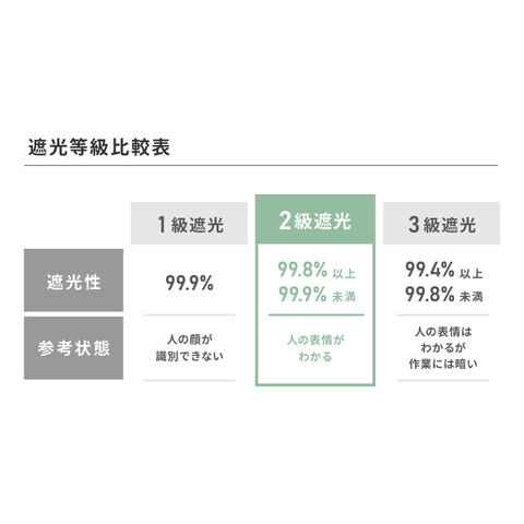 遮光率は99.8%以上で、人の表情が認識できるほどよい暗さです。