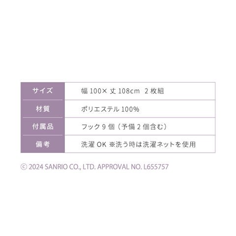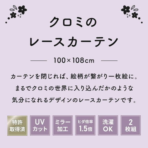 クロミ絵羽レースカーテン 2枚組 100×108cm UVカット 洗える 洗濯 プライバシー 目隠し フック付き カーテン 紫外線 おしゃれ かわいい サンリオ マイメロディ クロミ バク【送料無料】