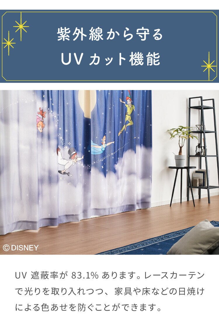 ピーターパン絵羽レースカーテン 2枚組 100×176cm UVカット 洗える 洗濯 プライバシー 目隠し フック付き カーテン 紫外線 おしゃれ かわいい ディズニー ピーターパン ティンカーベル ウェンディ【送料無料】