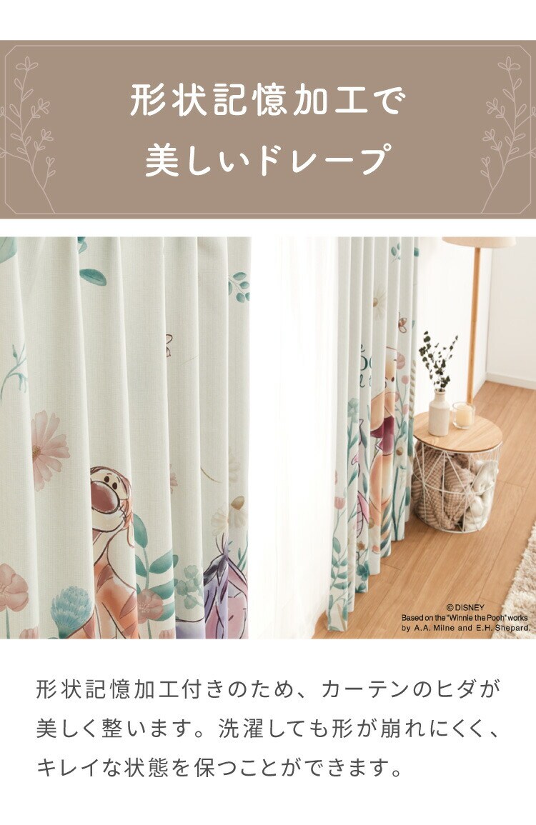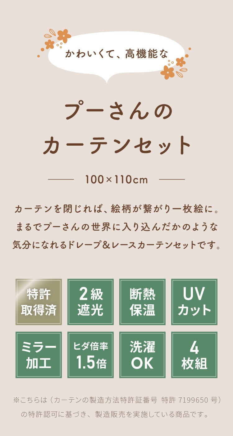 プーさんの2級遮光カーテンとレースカーテンの4枚セットです。