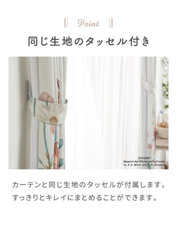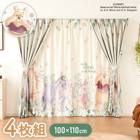 プーさんカーテンセット 4枚組 100×110cm 遮光カーテン レースカーテン 洗える 洗濯 カーテン フック タッセル付き おしゃれ かわいい ディズニー くまのプーさん ピグレット ティガー イーヨー【送料無料】