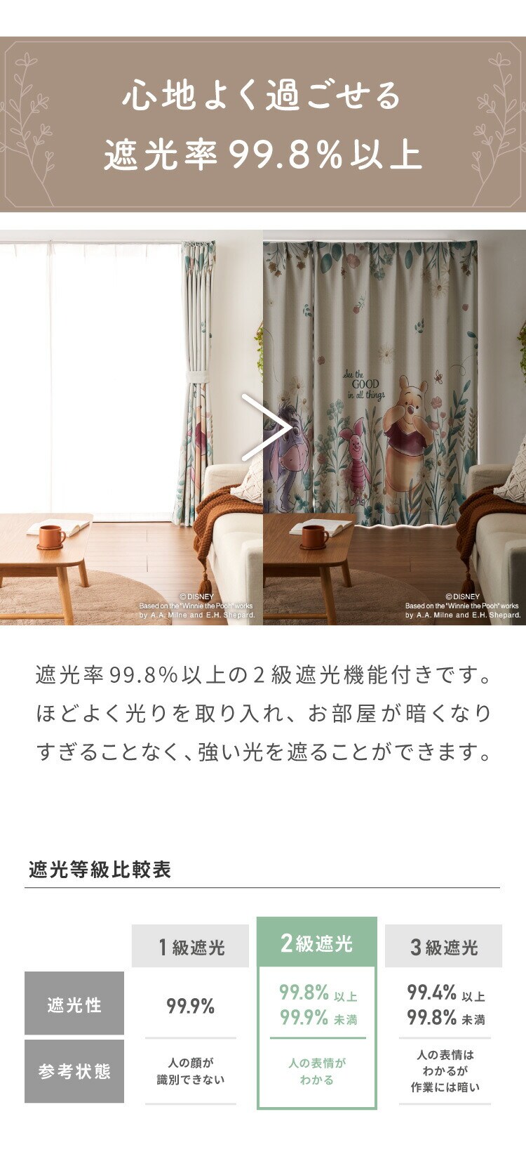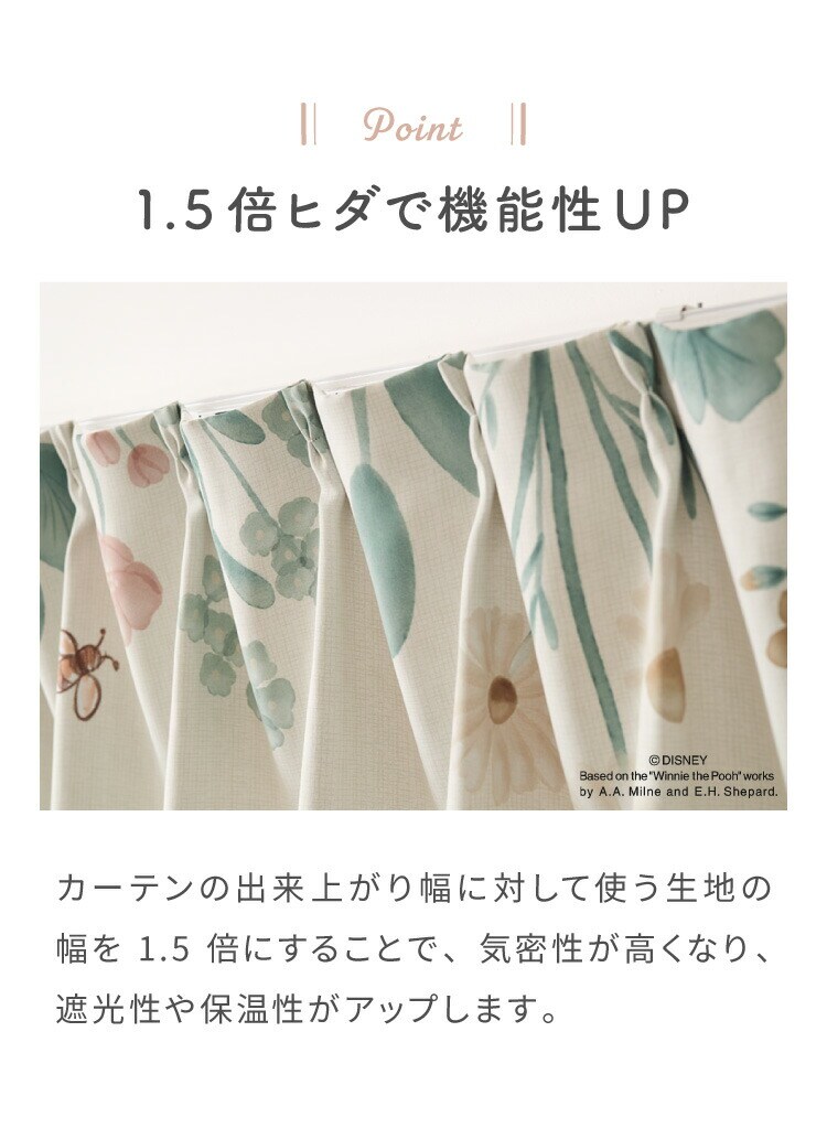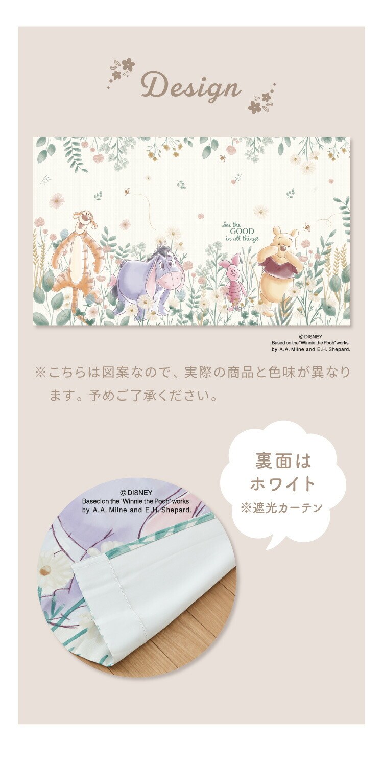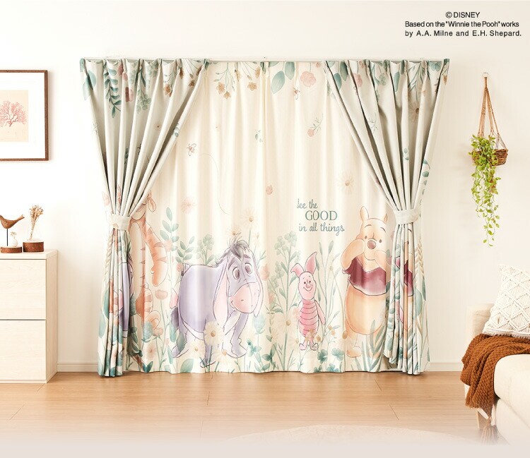 プーさんの2級遮光カーテンとレースカーテンの4枚セットです。