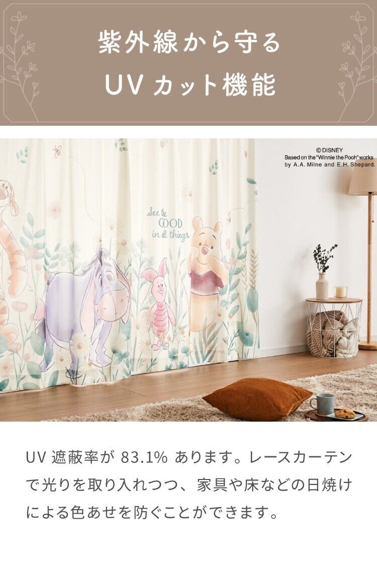 プーさんカーテンセット 4枚組 100×150cm 遮光カーテン レースカーテン 洗える 洗濯 カーテン フック タッセル付き おしゃれ かわいい ディズニー くまのプーさん ピグレット ティガー イーヨー【送料無料】