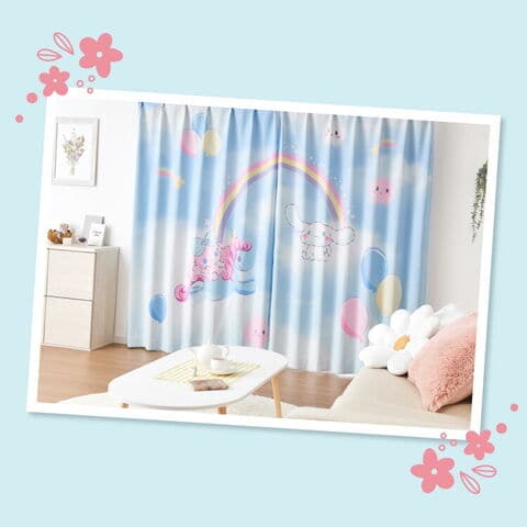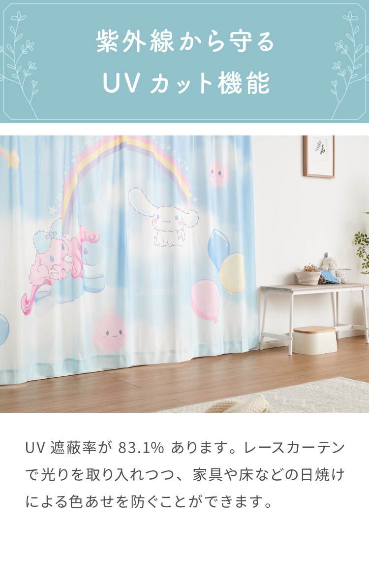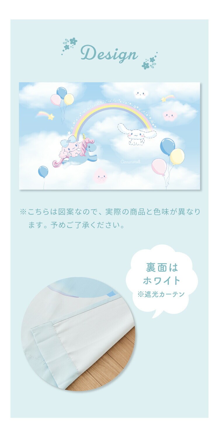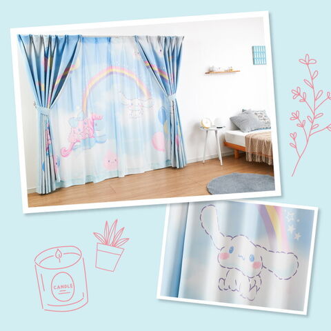 シナモロールの2級遮光カーテンとレースカーテンの4枚セットです。