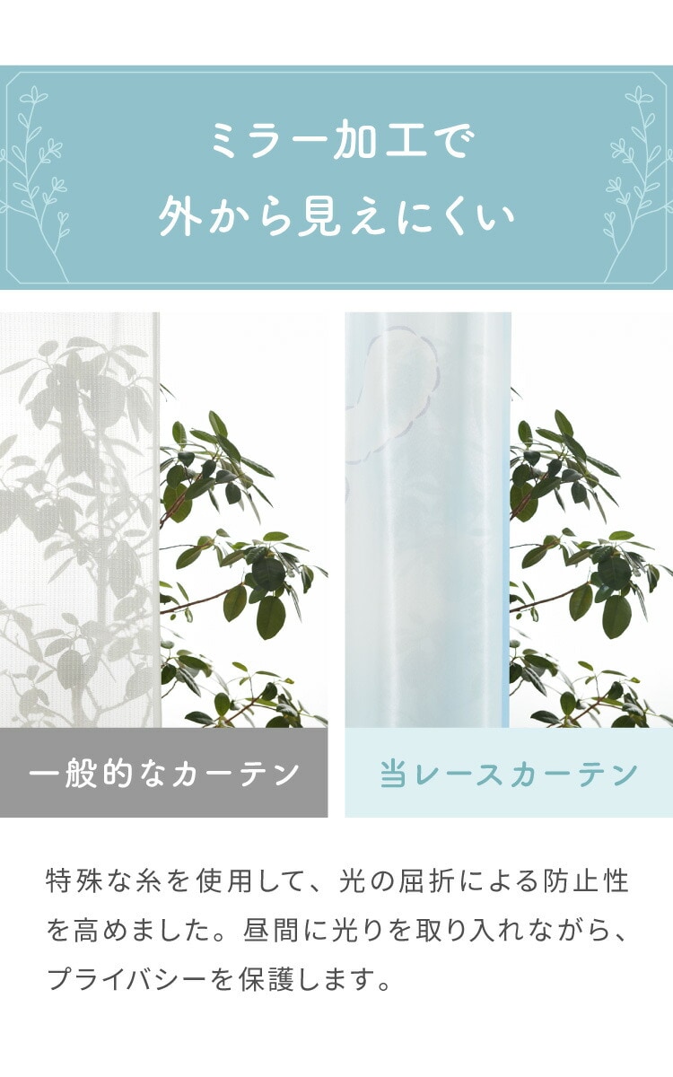 レースカーテンはUV遮蔽率83.1%、紫外線からお部屋を守ります。