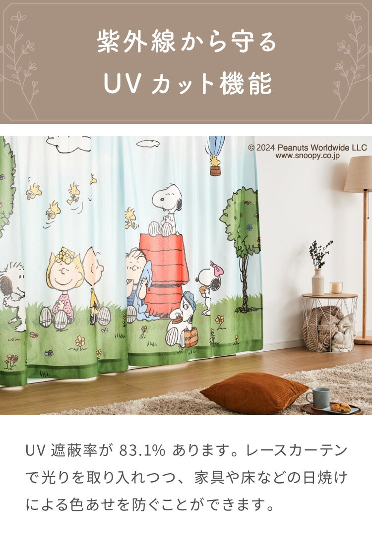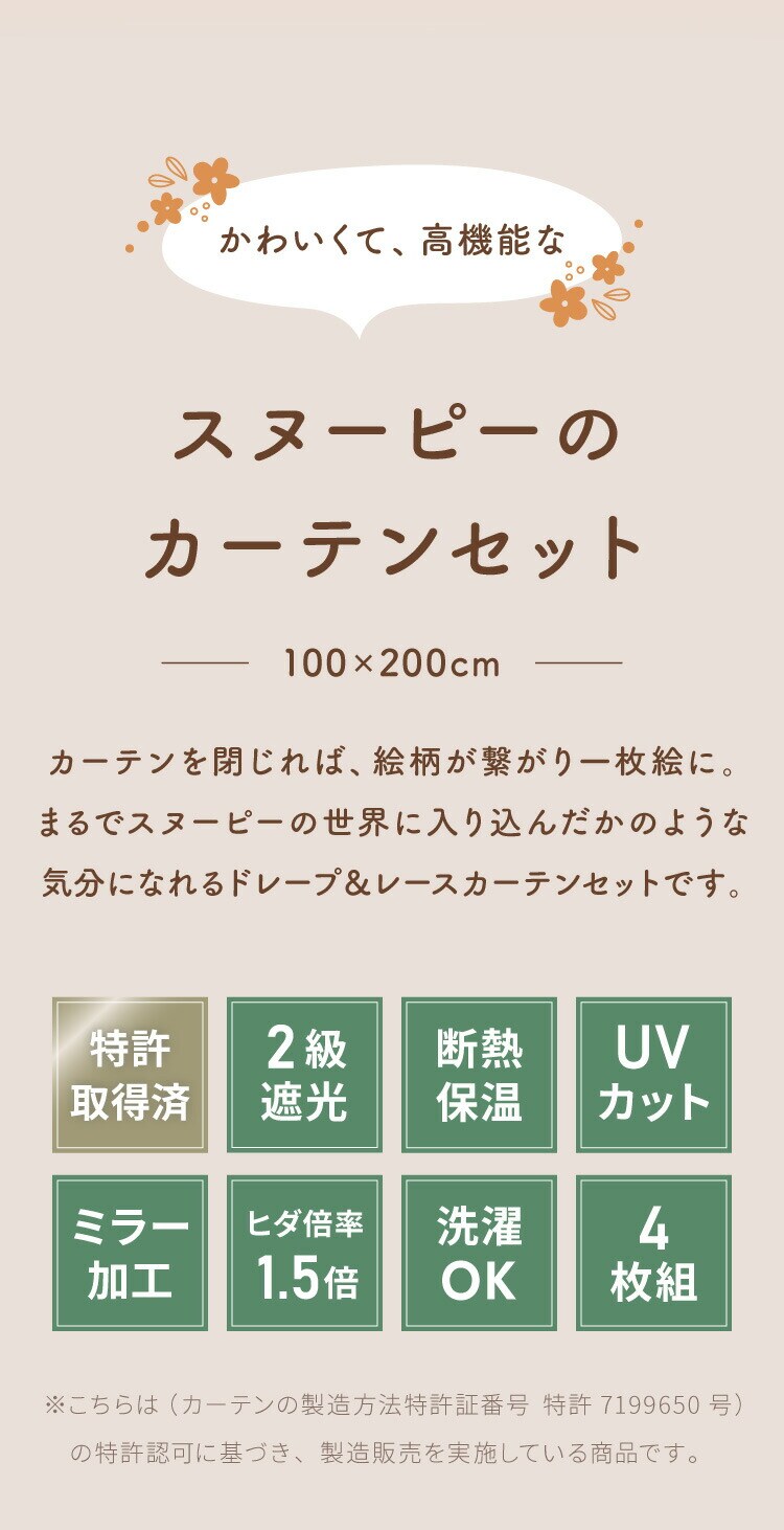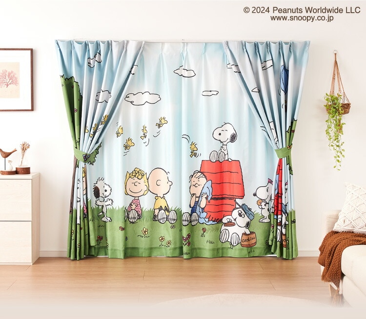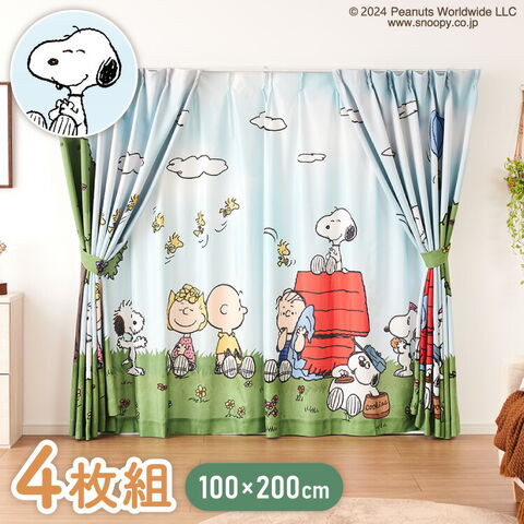 スヌーピーの2級遮光カーテンとレースカーテンの4枚セットです。