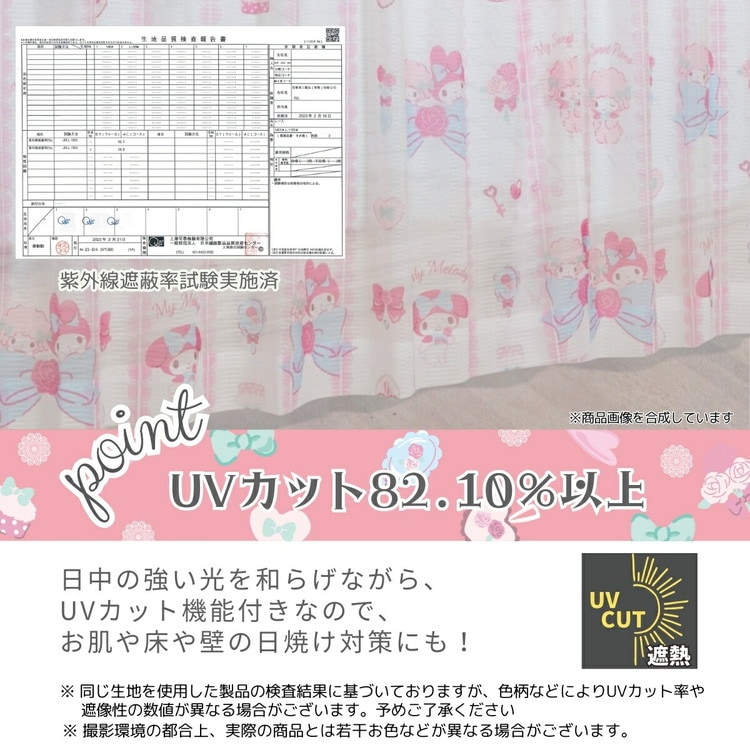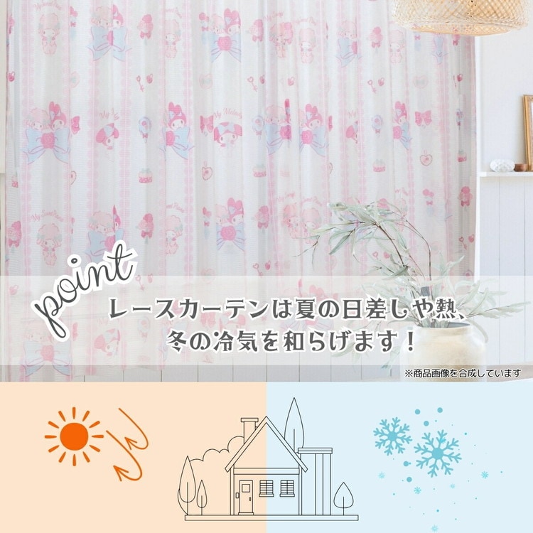 マイメロディ&マイスウィートピアノ レースカーテン 2枚セット 幅100×丈176cm UVカット 外から見えにくい キャラクター 断熱 お子様 子供部屋 女の子 かわいい おしゃれ マイメロ サンリオ【送料無料】