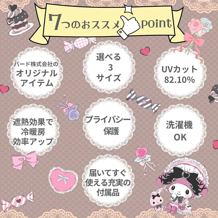 マイメロディ&マイスウィートピアノが描かれたカーテン。 UVカット機能付き!