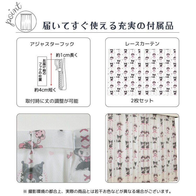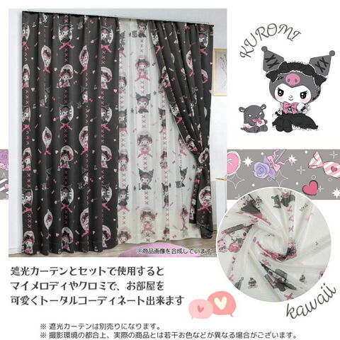 クロミ マイメロディ レースカーテン 2枚セット 幅100×丈133cm UVカット 外から見えにくい キャラクター 断熱 お子様 子供部屋 女の子 かわいい おしゃれ マイメロ サンリオ【送料無料】