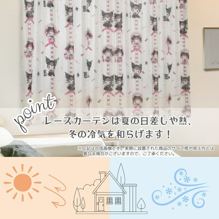 クロミ マイメロディ サンリオ Sanrio クロミちゃん くろみ レースカーテン 2枚セット 幅100×丈198cm UVカット キャラクター 断熱 お子様 子供部屋 女の子 かわいい おしゃれ マイメロ サンリオ【送料無料】