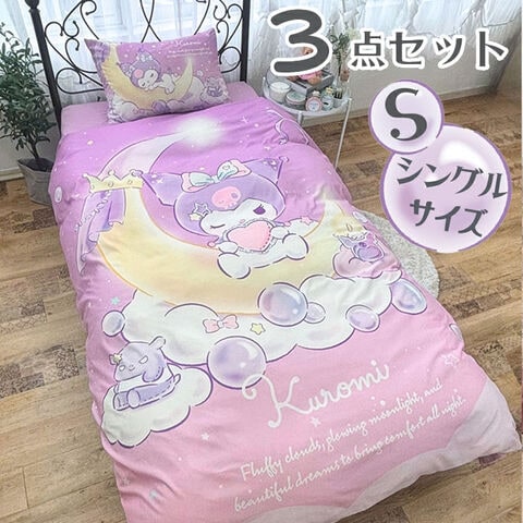 クロミ シングル 3点セット 掛け布団カバー ボックスシーツ 枕カバー しわになりにくく乾きが早い ピーチスキン加工 キティ マイメロディ かわいい 子供用 子供部屋【送料無料】