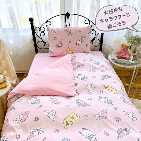 サンリオ シングル 3点セット 掛け布団カバー ボックスシーツ 枕カバー しわになりにくく乾きが早い ピーチスキン加工 キティ マイメロディ ポチャッコ サラサラ かわいい 子供用 子供部屋【送料無料】