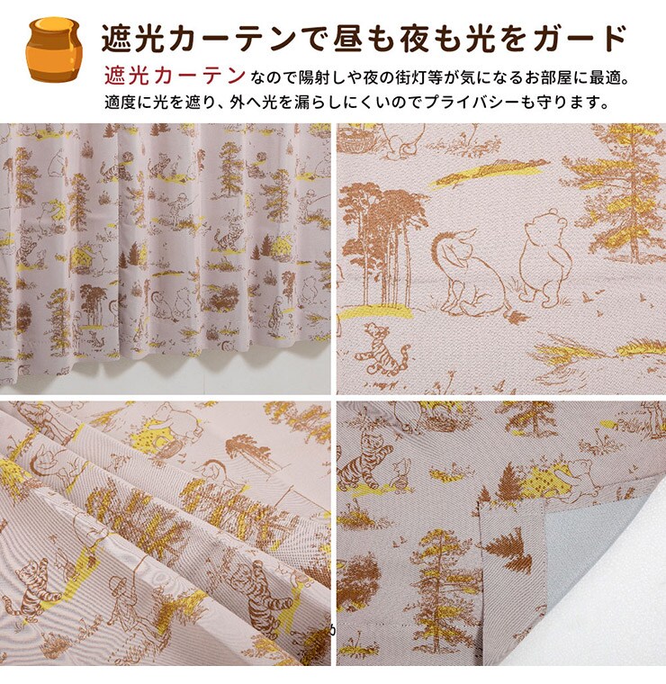 くまのプーさん 幅100×丈200cm 遮光 カーテン 2枚セット Disneyzone Disney/ディズニー クラシックプー 遮熱 プー ティガー pooh イーヨー 洗濯可能 ドレープカーテン【送料無料】