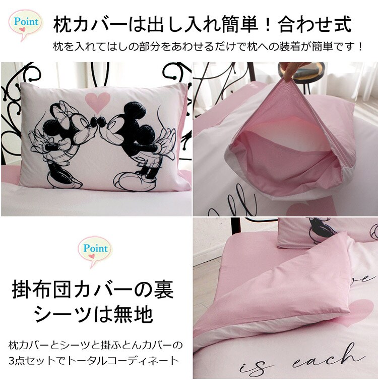 ミッキー ミニー キャラクター 布団カバー3点セット シングル Disneyzone ディズニー 布団カバー 掛布団カバー 3点セット ベッドシーツ 敷布団カバー 枕カバー 洗濯可能 キャラクター ミニー【送料無料】