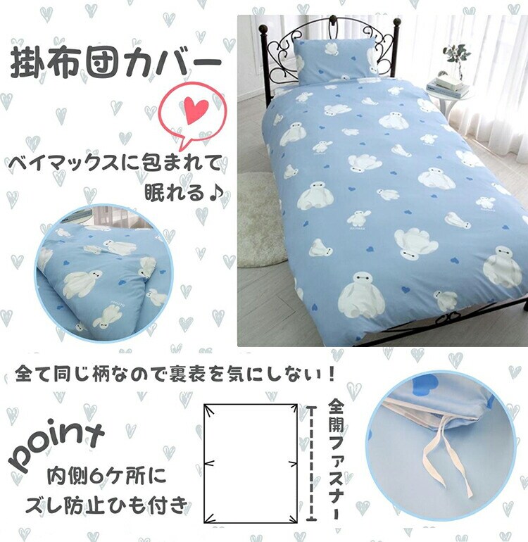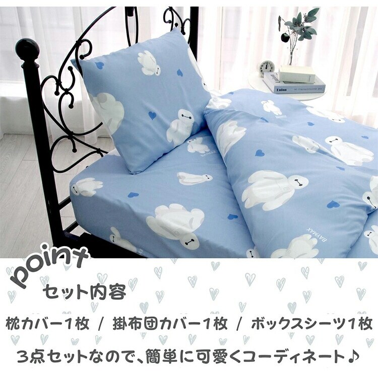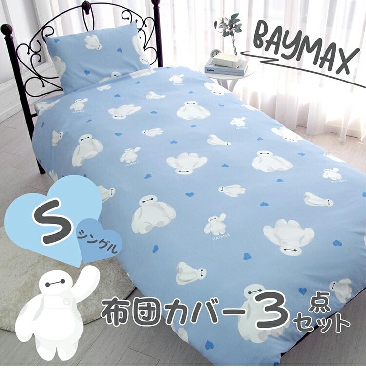 寝具 布団カバー カバーセット かわいい ベイマックス Baymax ディズニー オールシーズン キッズ 速乾 吸収 3点セット 洗濯可 洋・和シングル 共通 しわになりにくく プレゼント カバー【送料無料】