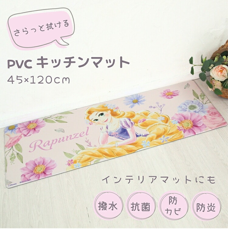 キッチンマット 45×120cm 撥水加工 かわいい ディズニー 水拭きOK 撥水 塔の上のラプンツェル 足元マット ディズニーキャラ プリンセス ディズニープリンセス キャラクター おしゃれ 清潔【送料無料】