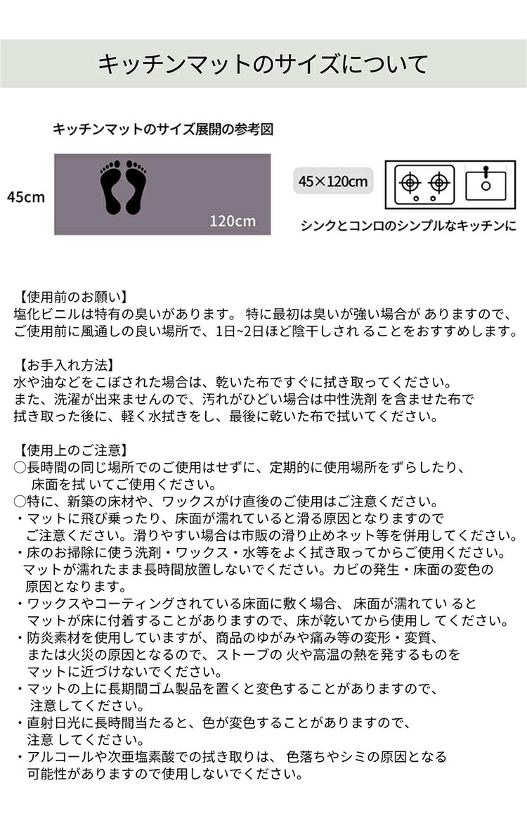 マット、キッチン用品、キッチンアイテム、キッチングッズ、キッチン小物、キッチン雑貨、おすすめ、オススメ、お洒落、新生活準備、新生活、ソファサイド、ベッドサイド、カーペット、45cm、120cm、インテリアマット、PVCキッチンマット、抗菌、洗濯不要、台所、オールシーズン、オールシーズン対応、1年中使える、台所用マット、玄関マット、オシャレ、可愛い、カワイイ、一人暮らし、ひとり暮らし