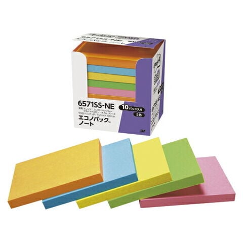 スリーエムジャパン ポストイット エコノパック 強粘着ノート 5色混色 1箱【送料無料】