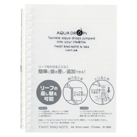 LIHIT LAB AQUA DROPs ツイストリング ノート A6 乳白 1冊