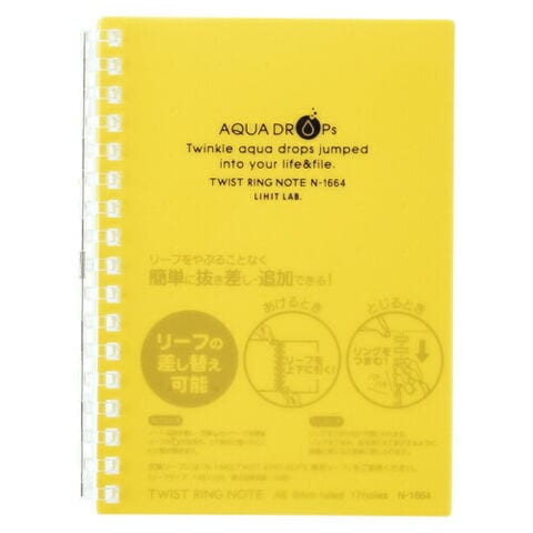LIHIT LAB AQUA DROPs ツイストリング ノート A6 黄 1冊