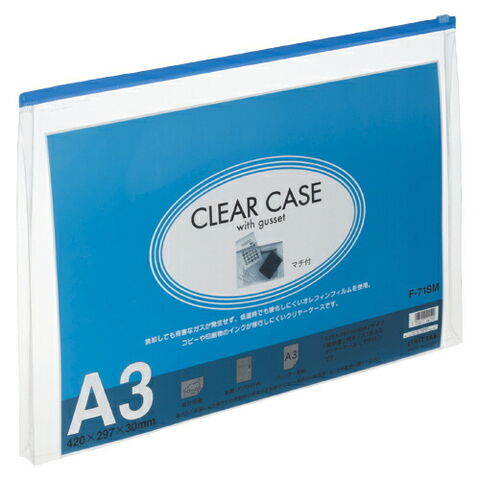 LIHIT LAB クリヤーケース ヨコ型 マチ付 A3S 藍 1枚