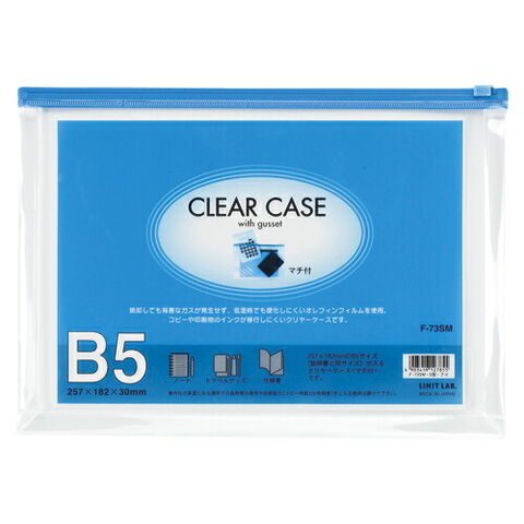 LIHIT LAB クリヤーケース(マチ付) B5S 藍 1 枚 F-73SM アイ 文房具 オフィス 用品