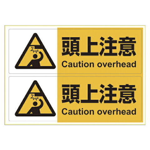 ヒサゴ ピタロングステッカー 頭上注意 A4 ヨコ2面 KLS017 1枚