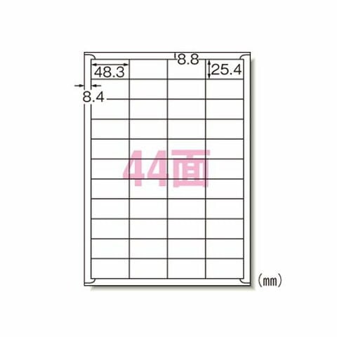 A4 44面 四辺余白付/シートサイズ:A4判 (210mm×297mm)/ラベルサイズ:48.3mm×25.4mm(4列×11段)