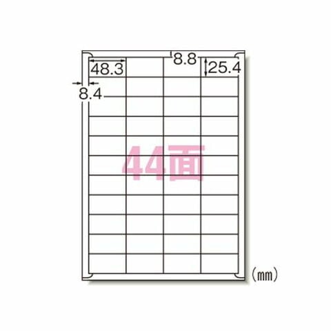 A4 44面 四辺余白付/シートサイズ:A4判 (210mm×297mm)/ラベルサイズ:48.3mm×25.4mm(4列×11段)
