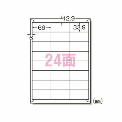 A4判 24面 四辺余白付/シートサイズ:A4判 (210mm×297mm)/ラベルサイズ:66mm×33.9mm(3列×8段)