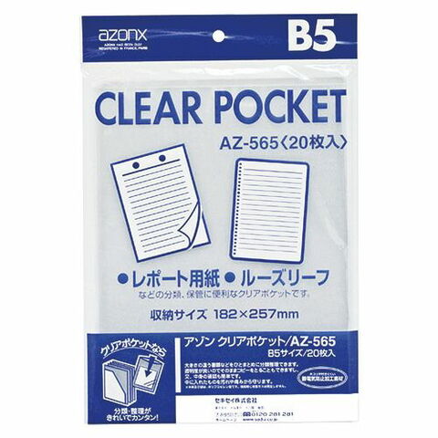 セキセイ アゾン クリアポケット B5 1 冊 AZ-565-00 文房具 オフィス 用品