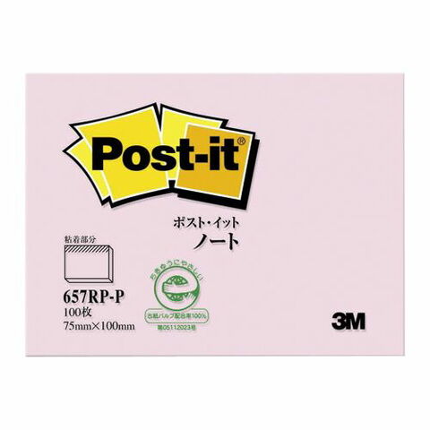 スリーエムジャパン ポストイット再生紙 ノート ピンク 1 個 657RP-P 文房具 オフィス 用品