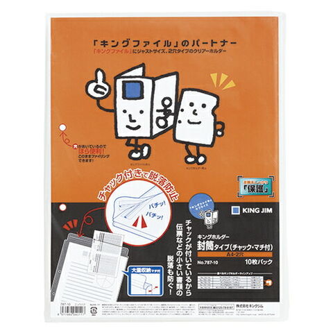 キングジム キングホルダー 封筒タイプ チャックマチ付A4 乳白 10枚 1パック