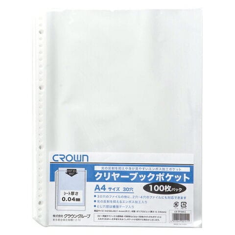 クラウン クリヤーブックポケット A4 厚み0.04mm 100枚入 1 パック CR-TP104-C 文房具 オフィス 用品