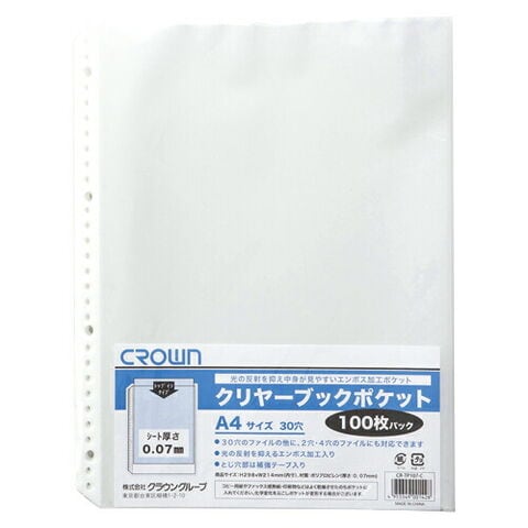 クラウン クリヤーブックポケット A4 厚み0.07mm 100枚入 1 パック CR-TP107-C 文房具 オフィス 用品