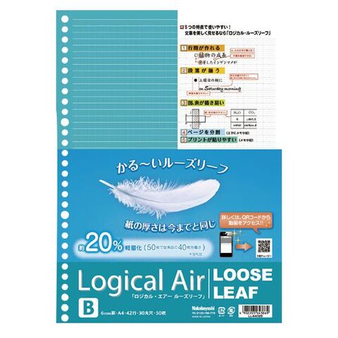 ナカバヤシ ロジカルエアー ルーズリーフ A4 B罫 50枚 1冊