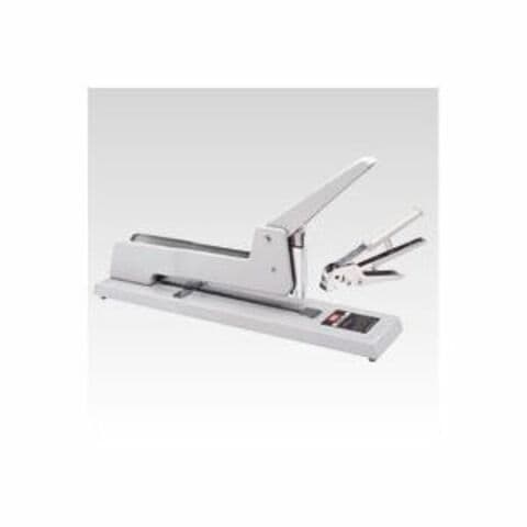 綴じ枚数:30から160枚。綴じ奥行:最大256mm。綴じ厚:最大約11mm。針装てん数:200本。奥行ゲージ付。付属品:リムーバ。サイズ:巾119×奥518×高280mm。重量:3.92kg。専用使用針:1210、1213、1217。