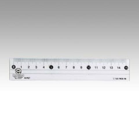 再生PET製。目盛:15cm。横×縦×厚:160×30×1.5mm。