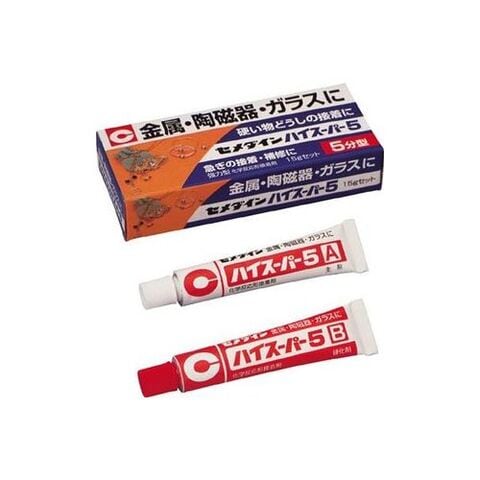 【特徴】●混合後は5分で硬化が開始するエポキシ系接着剤です。●急ぎの作業に適する速硬化タイプです。●主剤をブルーに着色してあり、混合の目安として色が消えるため大変便利です。【仕様】●容量(g):15●色(主剤/硬化剤):青色半透明/淡黄色半透明●質量(g):30●硬化時間(23℃):1時間●2液混合型【材質/仕上】●主成分:エポキシ樹脂【用途】●金属ガラス、陶磁器、硬質プラスチックなどの接着。