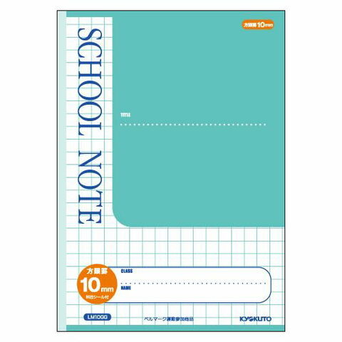 「キョクトウ スクールノート 方眼罫10mm LM10GG グリーン」は、鮮やかなカラーリングと罫内容が一目でわかる機能的なデザインの学習ノートです。
